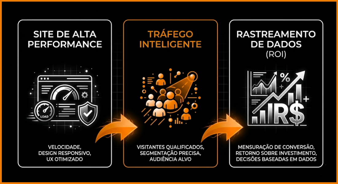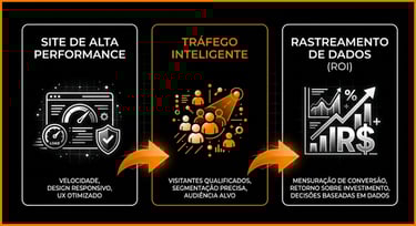 🔄 Ciclo de Melhoria: Com os dados do site, otimizamos o tráfego. Com os dados do tráfego, refinamos o site. É assim que se escala um negócio